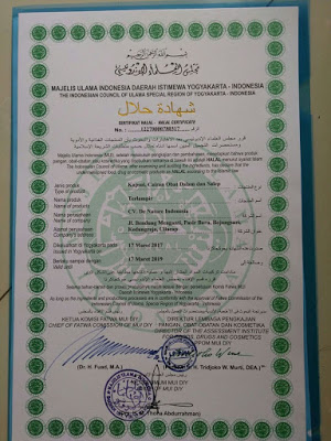 - Produk De Nature sudah bersertifikat Halal dari MUI