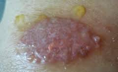 - Ketika cairan mengering, menjadi berkerak, dan setelah sekian lama menjadi bersisik.