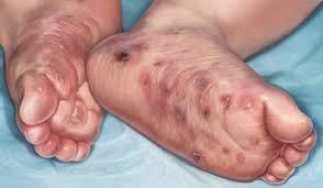 Nama Salep Yang Terbukti Sembuhkan Eksim Basah Pada Kaki Anak - Dermatitis numularis atau Eksim basah adalah peradangan kronis pada kulit yang ditandai dengan lesi berbentuk koin (numular) atau oval dengan batas yang tegas. Disebut dengan eksim basah karena lesi atau kelainan kulit awal berupa bintil-bintil padat (papul) disertai bintil-bintil cairan (vesikel) yang mudah pecah dan membasah.